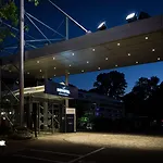Faciliteit was keurig schoon en goed onderhouden, net wat we nodig hadden. De locatie was rustig op loopafstand van de rivier, een commercieel centrum en de snelweg, en gratis parkeergelegenheid was een uitstekende bonus. De service was goed, gezellige bar, responsief personeel.